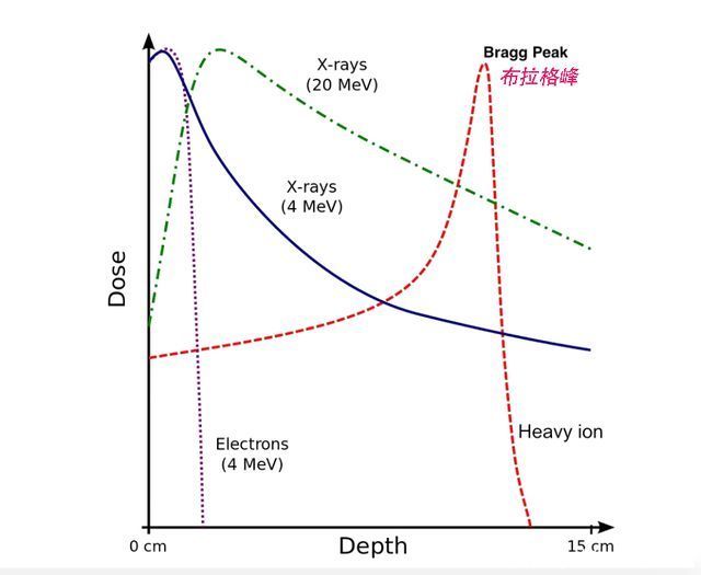 在穿过生物体时,并不是立刻释放出能量,而是会产生布拉格尖峰,释放出大量能量。